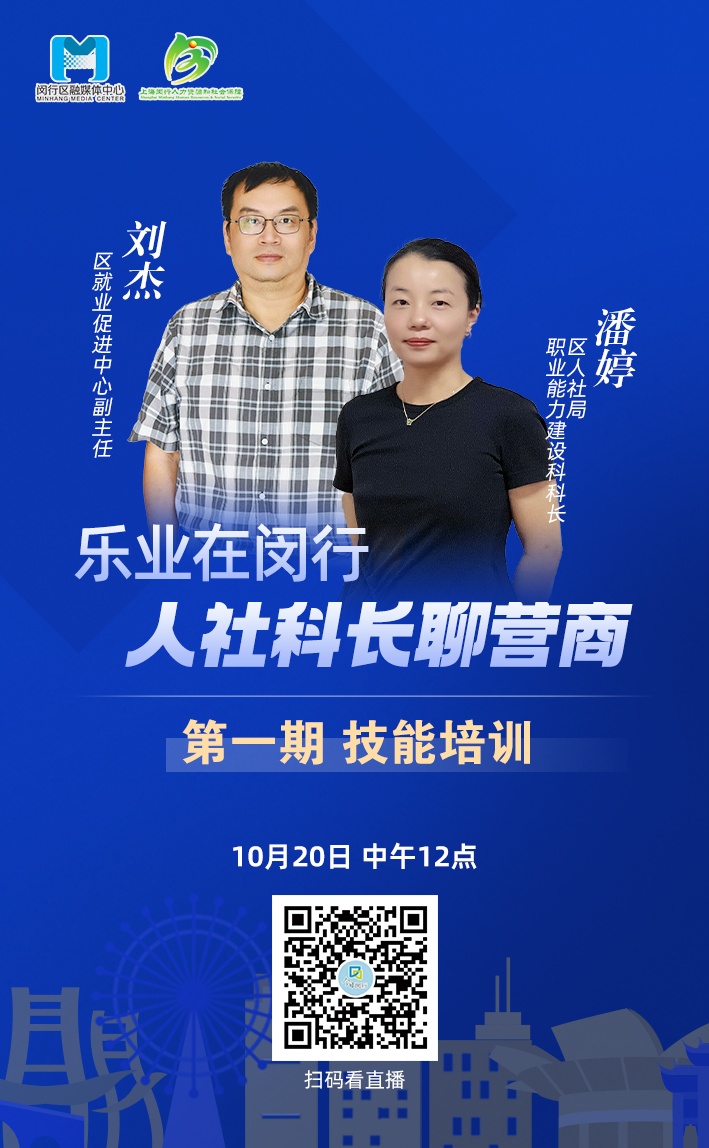 10月20日至24日,连续5天,每天中午12:00—12:30,区人社局10位科长将围绕技能培训、就业创业、劳动关系、社会保障、人力资源等热点话题,为您解读政策、分享案例、答疑解惑。