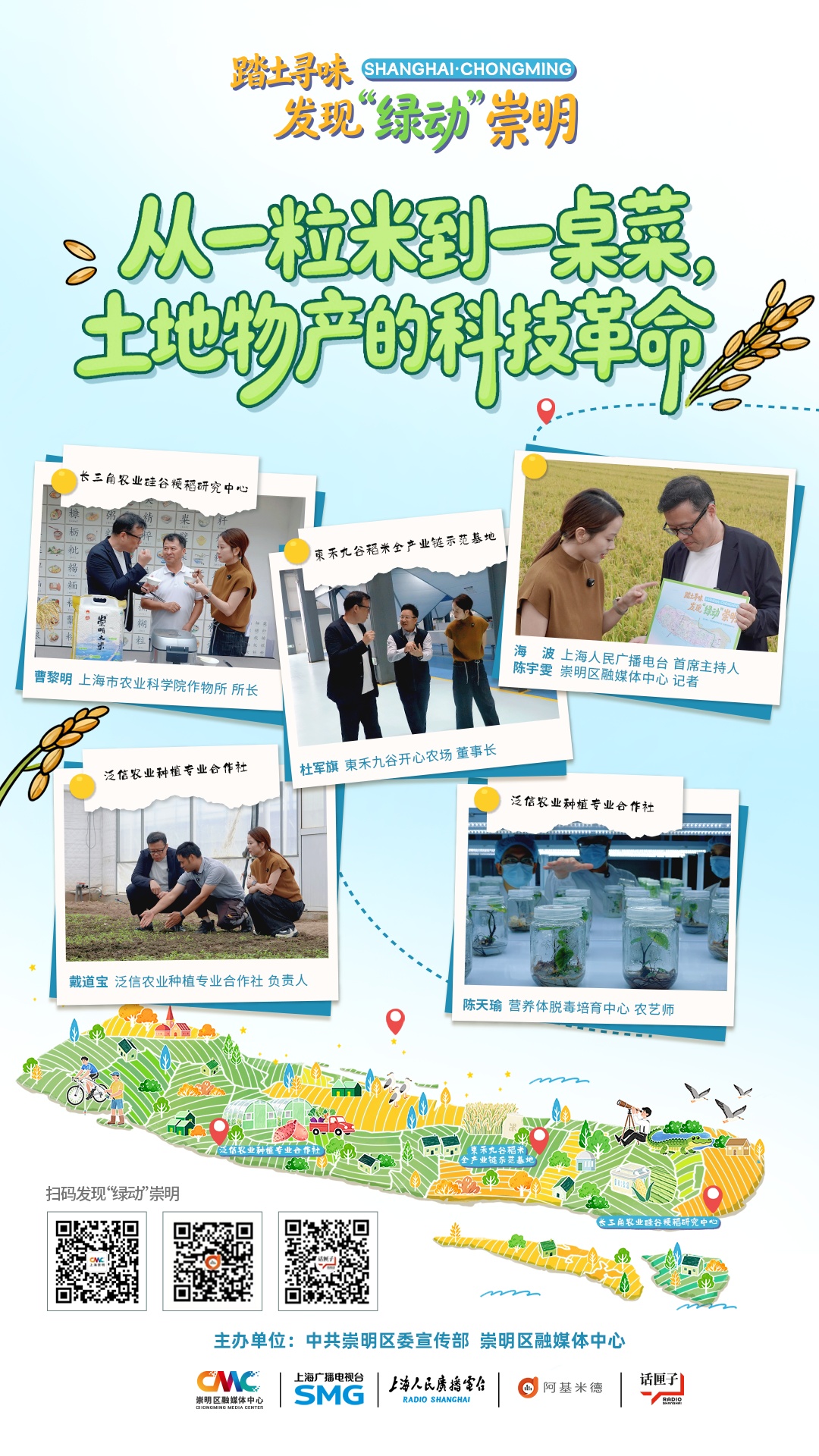 暖阳洒在崇明竖新镇的稻田上,金浪一卷卷漫过田埂——这不是普通的农田风光,而是上海“智慧粮仓”的丰收序曲。继去年跟着三条水脉读懂崇明后,今年《踏土寻味·发现“绿动”崇明》系列再出发,跟着上海人民广播电台首席主持人海波和区融媒体中心记者陈宇雯的脚步,从“土”里找答案:当传统农田遇上科技,一粒米、一篮菜会发生怎样的蜕变?