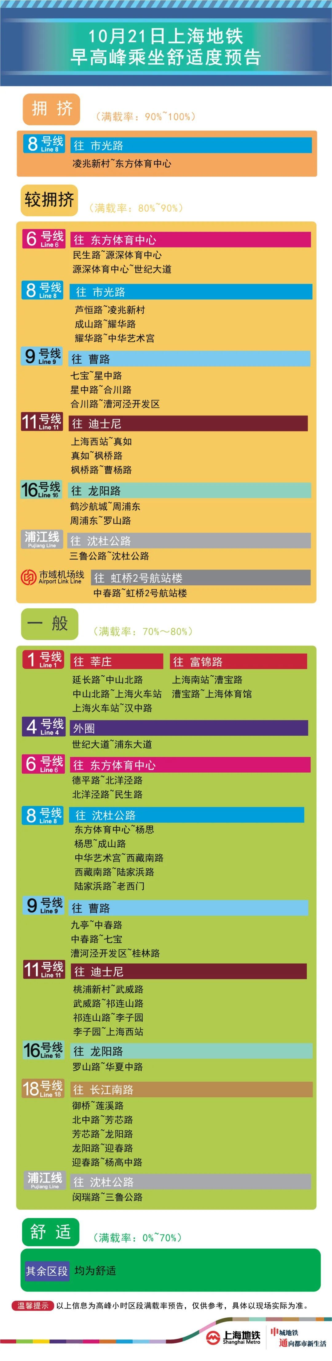 为提升上海地铁早高峰期间出行服务水平,提升乘客乘坐体验,上海地铁向乘客提供乘坐舒适度预告,方便乘客提