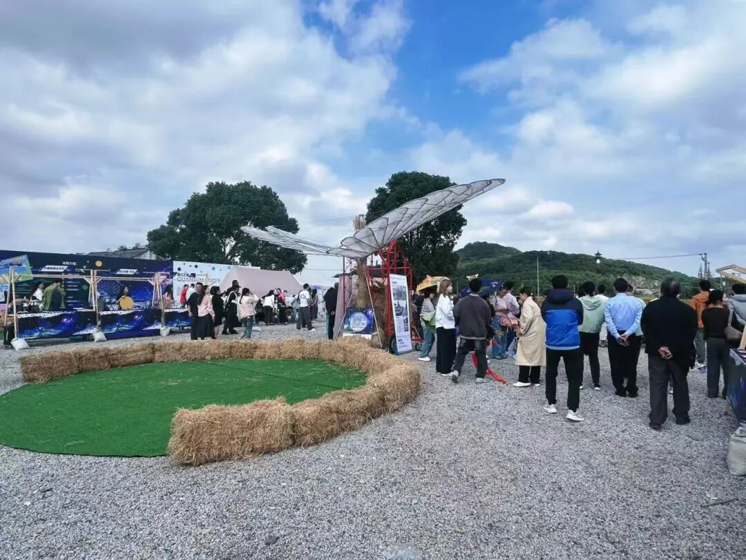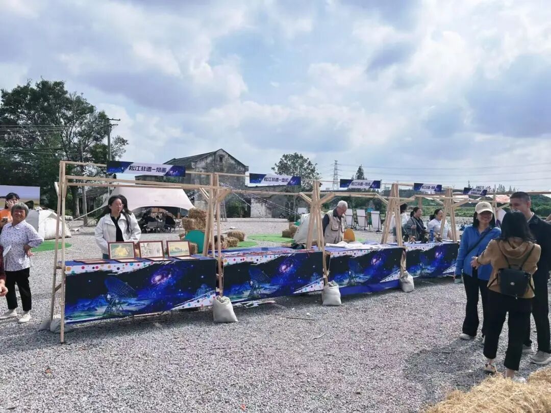 此次分展区从“量子城市”深层内涵出发,以沪派江南量子乡村、诗画云间文化、公众参与艺术共创3个主题进行布展,展区位于沪派江南天马山单元首发区翁浜画境和佘山镇新镇村天马星空村。上午10时,随着一只只形态各异、色彩斑斓的艺术风筝在村民手中腾飞,乡土与艺术也在这一刻与天地连接。翁浜画境展区内,山水风光与风吹稻田构建成可看可感的自然场景;一块块关于“九峰三泖”过去、现在和未来的艺术展牌在乡间有序陈列;带有历史韵味的云间非遗展示小车,吸引当地村民纷至沓来。市民王女士边吃着现采的菱角,边和乡村手工艺人制作手工,连连赞赏。“好吃、好玩还好看,今天村庄显得特别有活力。”
