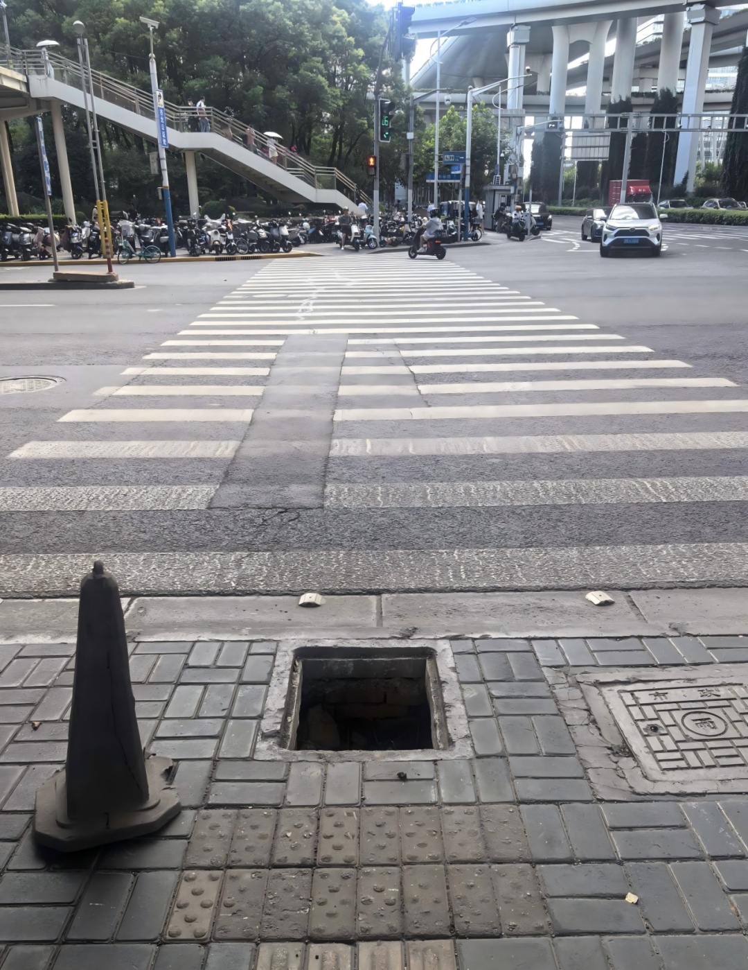 “报告城运中心,汶水路地铁站1号口与4号口之间的通道桥下,发现一处井盖破损。该处人流量大,安全隐患突出,我已设置警示锥提醒行人绕行。”网格员在设置警示措施的同时,同步通过“静邻e家”App拍照上报案件。城运中心坐班人员随即派送至相关部门,提请尽快维修,以彻底消除隐患,保障市民出行安全。