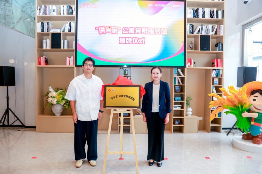 为进一步以党建贯通各类资源、提升公寓“家门口”的服务能级,活动现场为“供合家”公寓党群服务站揭牌。