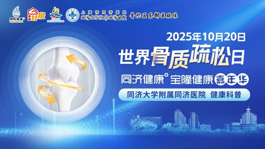 每年的10月20日是“世界骨质疏松日”,2025年的全国宣传主题为 “健康体重 强骨健身” ,倡议社会各界保持骨骼健康、促进全身健康的理念。 全国骨质疏松症流行病学调查显示,全国骨质疏松患者超9000万,一次简单的咳嗽、弯腰都可能引发骨折,这并非危言耸听,而是沉默的骨质疏松症在“作祟”。 体重关乎骨量,强骨才能强身——四大专家揭秘骨质疏松的防与治 值此之际,上海市同济医院内分泌代谢科与骨科四大专家强强联手,于10月20日上午在甘泉路街道新宜居民区党群服务站进行了线上线下科普活动。为您揭示从预防、内科治疗到微创手术的全程骨骼健康管理策略。 识别上方二维码 回看科普直播