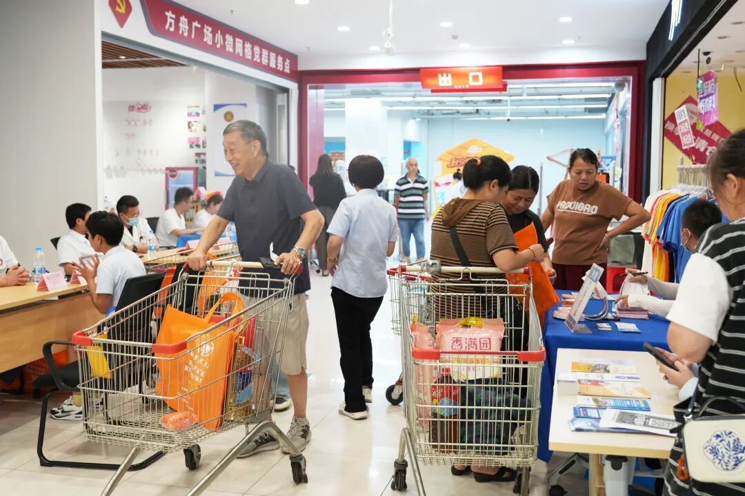 方舟时代广场地处百联嘉定商圈核心区域,是集商业、居住、休闲于一体的复合型社区。广场内有8幢类住宅楼,常住人口2291人,商户265家,流动人口占比近70%。如何促进商居融合、增强流动人口的归属感?方舟小微网格服务点的成立让问题迎刃而解。这个由共建单位共同运营的空间,已成为连接商户与居民的“聚邻空间”,既为商户拓宽宣传渠道,也让居民享受到“家门口”的便利。