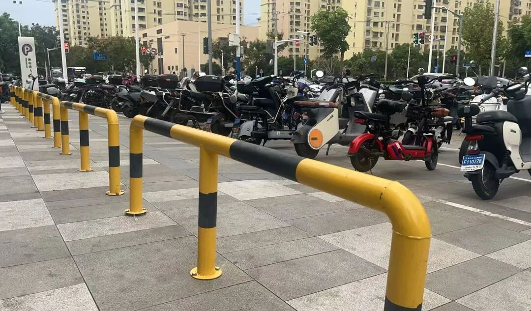考虑到广场周边停车空间有限,各单位决定在广场合理设置隔离栏与M型护栏,规范非机动车停放区域,并预留残疾人通道,确保通行无障碍,以“疏堵结合”根治乱象。同时,由城管加强执法,物业与市容市场化队员定点值守,杜绝乱设摊现象。