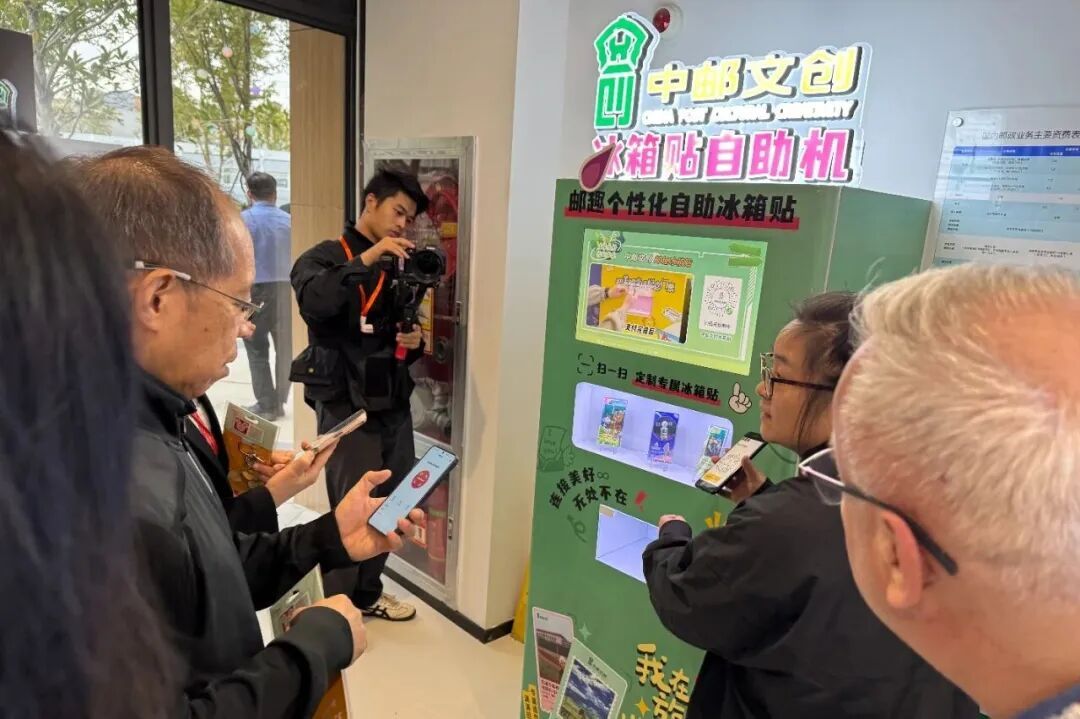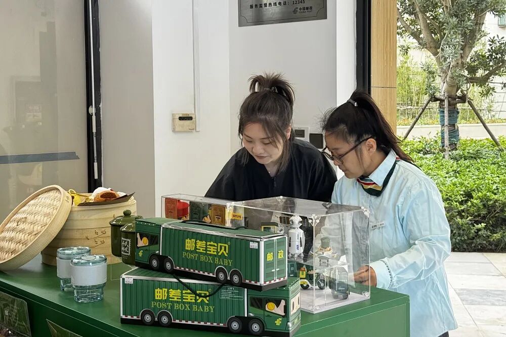 据邮政所工作人员介绍,该展区的不少文创产品都是“明星单品”,比如邮差宝贝盲盒,就很受小朋友和青少年的喜欢。定制冰箱贴、专属明信片等产品都与科学家社区的创新精神相吻合,邮政所已然成为社区综合服务的重要一环。