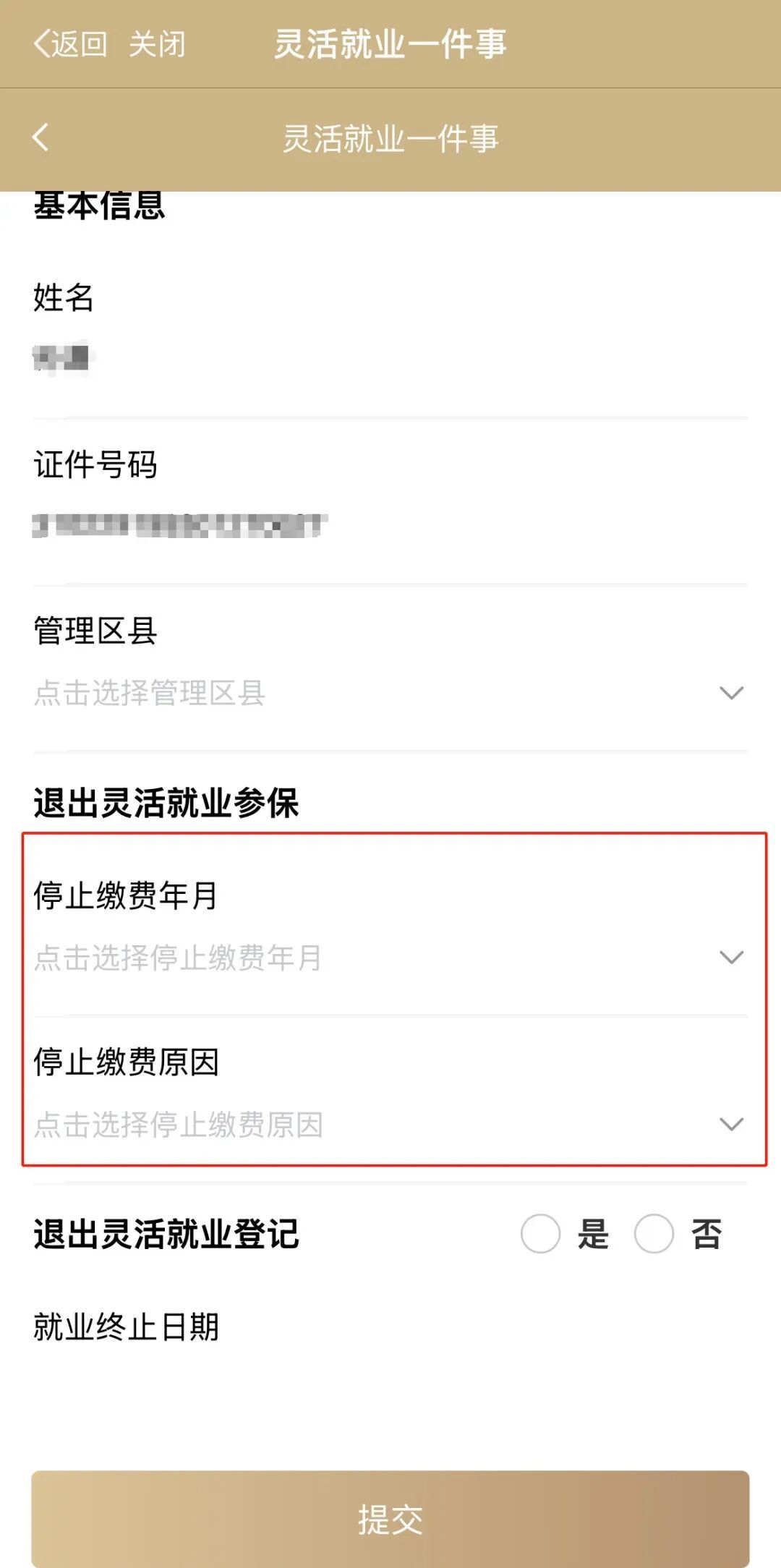 进入申报页面,系统会自动读取参保人员基础信息,申请人需要确认是否停止缴费,并核对停止缴费时间。