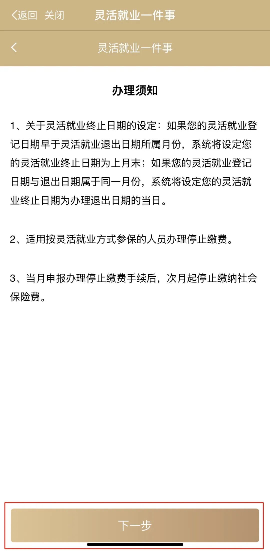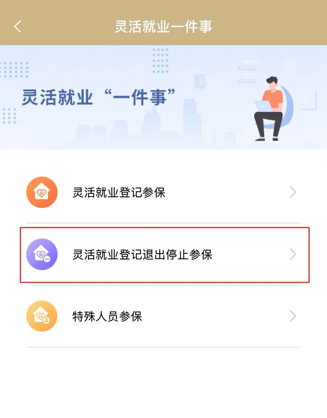 进入“灵活就业一件事”事项,选择“灵活就业登记退出停止参保”。