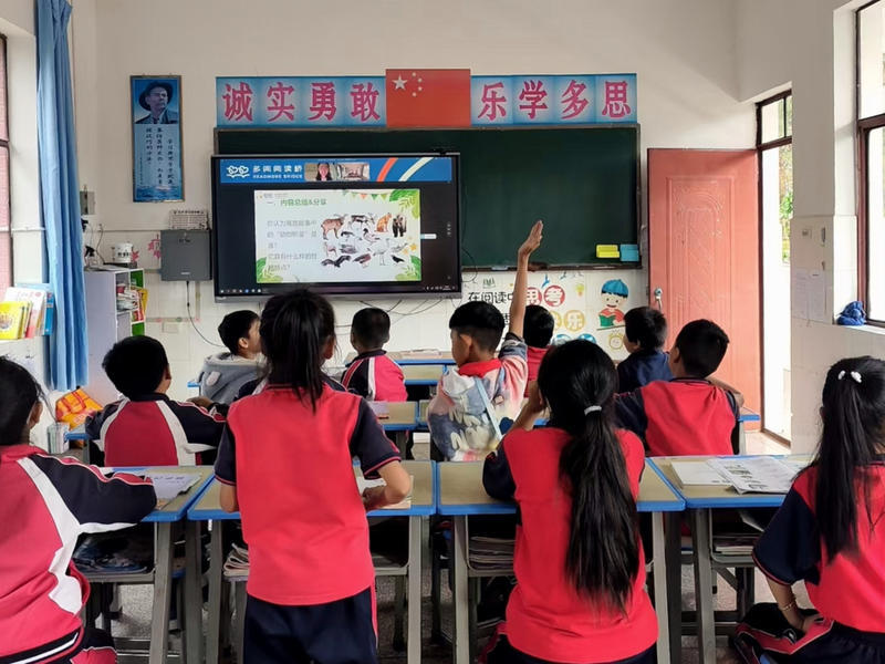 在具体的项目模式上,多阅公益协同乡村教师、在校和高校志愿者,采取远程陪伴和阅读班队活动形式,打造以乡村学生为主体的每学期八次的阅读课堂。