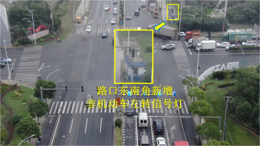 同时交管支队会通过路口信号灯搭接放行的方式确保西向北左转机动车通行效率,以及通过新增非机动车信号灯保障西向北左转非机动车的通行安全及效率。
