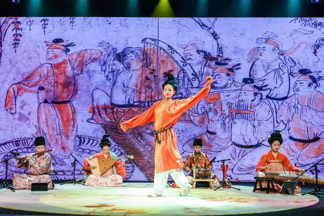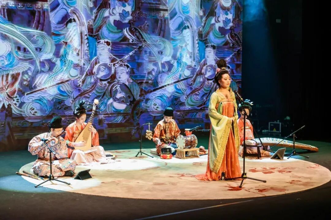 活动现场,胡腾舞随应鼓跃动,羯鼓节奏明快相和;琵琶声似金石裂空,尽显西域流光韵味。古琴、筝、笛等乐器交织共鸣,谱写出跨越千年的音乐对话。此次演出以复原古乐器与古谱为核心特色,演奏者凭借精湛技艺重现唐乐风华,引领观众沉浸式走进那个兼容并蓄、气象万千的盛唐时代。“书本里记载的丝路,好像在眼前活了过来。”演出结束后,不少观众仍沉浸在声光交织的盛景中,久久回味。