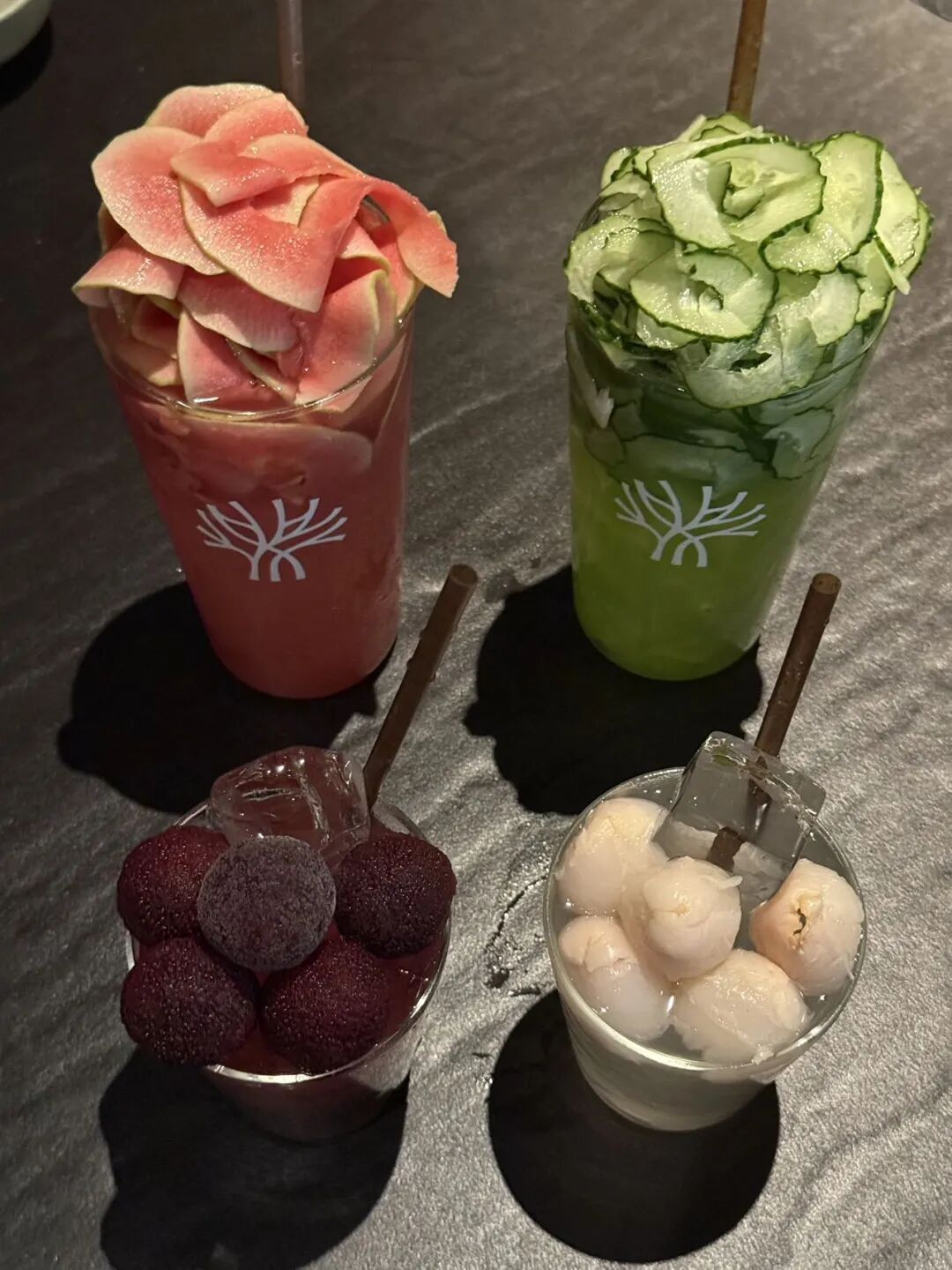 店里“荤的热闹”“素的娇俏”,另有车厘子冰、古法红焦糖手工气泡冰粉、酸酸草莓冰、黑米糍粑等甜品饮料作餐后点缀。