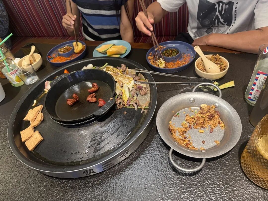 粉嫩的肉片在烙锅上滋滋冒油,香味扑鼻而来,咬下去第一口肉汁的瞬间,牛油香裹的鲜味在嘴里蔓延,肥而不腻。