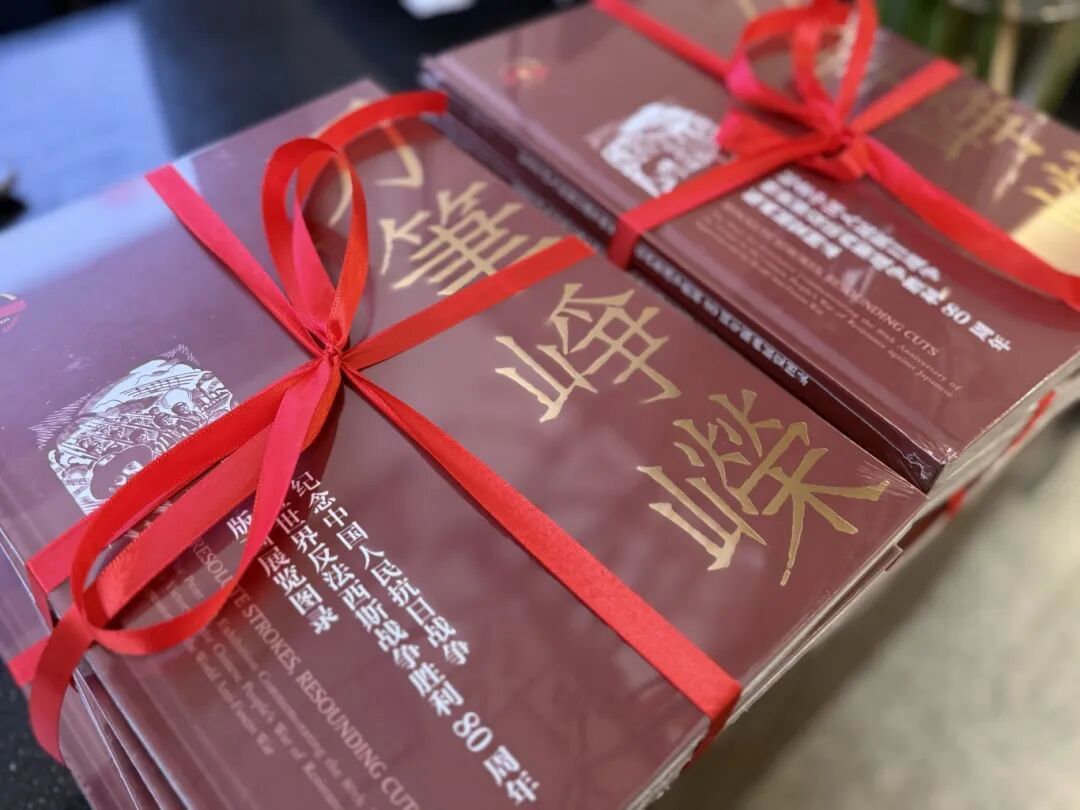 受邀嘉宾为虹口区图书馆、和平书院、多伦现代美术馆、四川北路街道文化中心、欧阳路街道文化中心、上海市鲁迅初级中学、上海市鲁迅中学等单位代表赠予《刀笔峥嵘——纪念中国人民抗日战争胜利80周年版画展览图录》,该书由展览内容汇编而成,旨在方便社会大众广泛阅读。