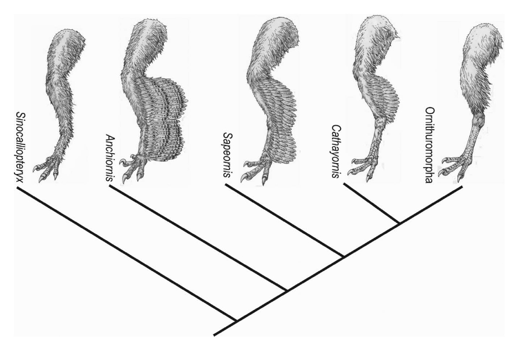 中华丽羽龙,3件标本中,只有1件发现了后肢跖骨部分长羽毛;