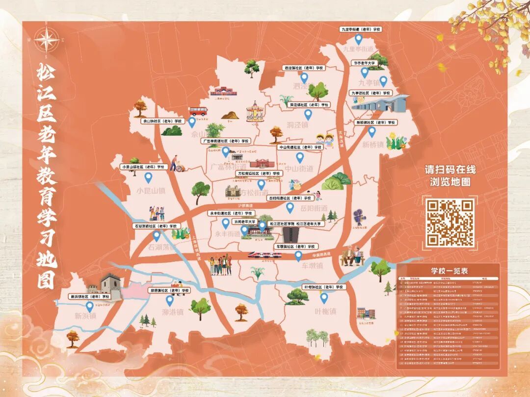 除了体验课程,松江区老年大学还准备了纸质版的学习地图,全区808个班级的老年课程开设情况一目了然。更为方便的是,市民只需扫码对应学校的二维码,即可在线“云游”各大学校,获取学校地址、教学环境、联系方式等详细信息。