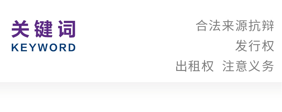 《著作权法》中“合法来源抗辩”能否适用于出租行为及对体现作品的商品(作品复制件)照片的网络展示,这与对“合法来源抗辩”的正当性解释有关。“合法来源抗辩”的正当性源于后续发行(转售复制件)的特征,即对他人制作并已首次发行的复制件购入后进行所有权转移的行为,缺乏获得著作权人直接许可的机制;转售者难以查明复制件的制作和首次发行是否合法,且其经营利益来自复制件进价与售价的差额,而非对脱离载体的作品的利用。因此将转售者的注意义务限于从合法渠道购入复制件具有正当性。《著作权法》对不涉及所有权转移的出租行为规定“合法来源抗辩”缺乏正当性,属于立法缺陷。转售者在网络平台中对商品照片的展示,附属于其转售行为,对其可准用“合法来源抗辩”。《著作权法》第59条第1款后半句规定:“......复制品的发行者或者视听作品、计算机软件、录音录像制品的复制品的出租者不能证明其发行、出租的复制品有合法来源的,应当承担法律责任。”虽然该条是从正面规定了何种情况下应当承担法律责任,但实际上是为被诉侵权人提供了无需承担责任的依据,即证明复制品的合法来源,因此通常被称为“合法来源抗辩”。尽管该条可从反面解读为“能证明其发行、出租的复制品有合法来源的,不承担法律责任”,但反面解读中的“不承担法律责任”显然是指“不承担赔偿责任”,不能被理解为不承担停止侵害的法律责任。否则,在没有其他法律或司法解释作出特别规定的情况下,侵权人只要证明了合法来源,就可以继续实施侵权行为,这显然与作为绝对权的著作财产权的基本性质相违背。同时,《专利法》和《商标法》在规定“合法来源抗辩”时,用语也均为“(证明合法来源的)不承担赔偿责任”。该条规定意味着在针对复制件(《著作权法》除了在第59条使用了“复制品”之外,在其他条款中均使用与之同义的“复制件”,下文除引用第59条之外,均使用“复制件”)的发行者和出租者提出的侵犯发行权和出租权的诉讼中,只要发行者和出租者能够证明复制件的合法来源,且权利人也无证据证明其知道该复制件为未经许可制作的复制件,发行者和出租者就无需承担赔偿责任。在司法实务中,“合法来源抗辩”对于诸如书店和音像店等从首次销售者(如出版社)处购入复制件再进行销售的“转售者”而言,具有重要意义。因为图书、音像制品属于作品或录音制品的复制件(为表述的简捷,后文均使用“作品的复制件”或者“复制件”),公开转售图书和音像制品就是“以销售的方式向公众提供作品的复制件”,属于《著作权法》明文规定的发行行为。在诉讼中,当涉案图书、音像制品未经著作权人许可而印刷、制作时,转售侵权复制件的书店、音像店只要能够通过提供从正规出版社以正常价格进货的单据等证据,证明涉案图书和音像制品有合法来源,即可免于承担赔偿责任,除非权利人另有证据证明其知道销售的是侵权复制件。虽然“合法来源抗辩”在2001年第一次修改后的《著作权法》中就已存在,但纵观国际版权条约和其他国家的立法,都难觅此项抗辩的踪迹,从而引起了对其正当性的疑问。更为重要的是,“合法来源抗辩”的正当性与其适用范围的解释密切相关。从《著作权法》第59条的字面意思看,“合法来源抗辩”既适用于侵犯发行权的行为,也适用于侵犯出租权的行为。但如后文所述,此项抗辩对侵犯出租权行为的适用将与《著作权法》对出租权的规定存在冲突。与此同时,“合法来源抗辩”只能适用于侵犯发行权和出租权的行为,不能适用于侵犯任何其他专有权利的行为。这在司法实务中导致权利人在针对侵权复制件转售者的诉讼中采取了一种策略,即如果涉案侵权复制件为印有美术作品或摄影作品的商品,或该商品本身就是立体美术作品的复制件(以下统称为“含有作品的商品”),转售者在诸如淘宝网等网络平台转售时展示该商品的照片,将不可避免地使公众可以自行选择时间和地点浏览照片中呈现的作品,构成了受信息网络传播权规制的交互式传播行为。此时即使转售者能够举证证明该商品(侵权复制件)有合法来源,从而可对其因转售该商品而侵犯发行权的行为适用“合法来源抗辩”,权利人也会主张转售者未经许可在网络平台上展示该商品照片的行为侵犯其中作品的信息网络传播权。由于“合法来源抗辩”在字面上不能适用于侵犯信息网络传播权的行为,转售者虽然无需为侵犯发行权的行为承担赔偿责任,但需要为侵犯信息网络传播权的行为承担赔偿责任。在引起广泛关注的“招财童子钥匙扣案”中,原告以京剧脸谱为基础创作了“招财童子”系列美术作品,被告则在天猫网中销售相似造型的钥匙扣产品,并在销售页面展示了钥匙扣的照片。由于被告能够证明涉案钥匙扣的合法来源,法院认定被告不为侵犯发行权的行为承担赔偿责任。但法院认为被告“所主张的合法来源抗辩仅适用免除发行权侵权的赔偿责任承担,不能免除其侵害......信息网络传播权赔偿责任的承担。”因此判决被告应为在销售页面展示涉案钥匙扣的照片、导致美术作品可被公众浏览的行为承担侵犯信息网络传播权的赔偿责任。然而,这样的诉讼策略和判决结果引起了困惑。既然转售侵权商品(侵权复制件)都能因转售者证明了商品的合