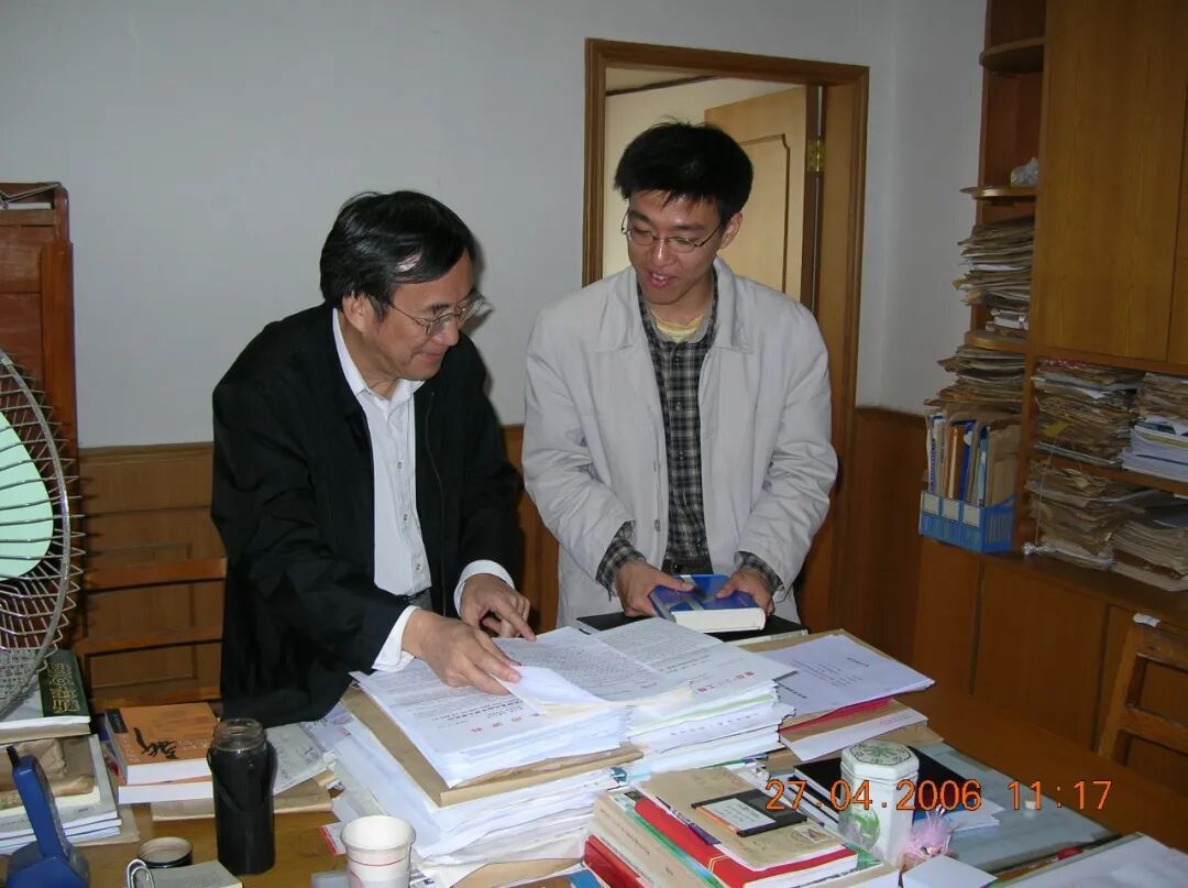 葛剑雄与所指导的博士生高蒙河合影,高蒙河的博士论文《长江下游考古时代的环境研究--文明进化中的生态系统和人地关系》于2005年获评全国百篇优博。