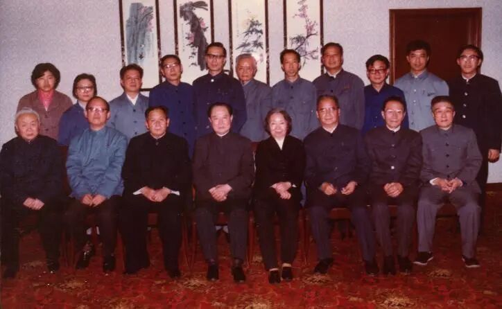 1983年10月,谭其骧在上海主持《肇域志》工作会议,与汪道涵市长、谢希德校长等合影。前排右三谭其骧、右四谢希德、右五汪道涵,后排右一葛剑雄)