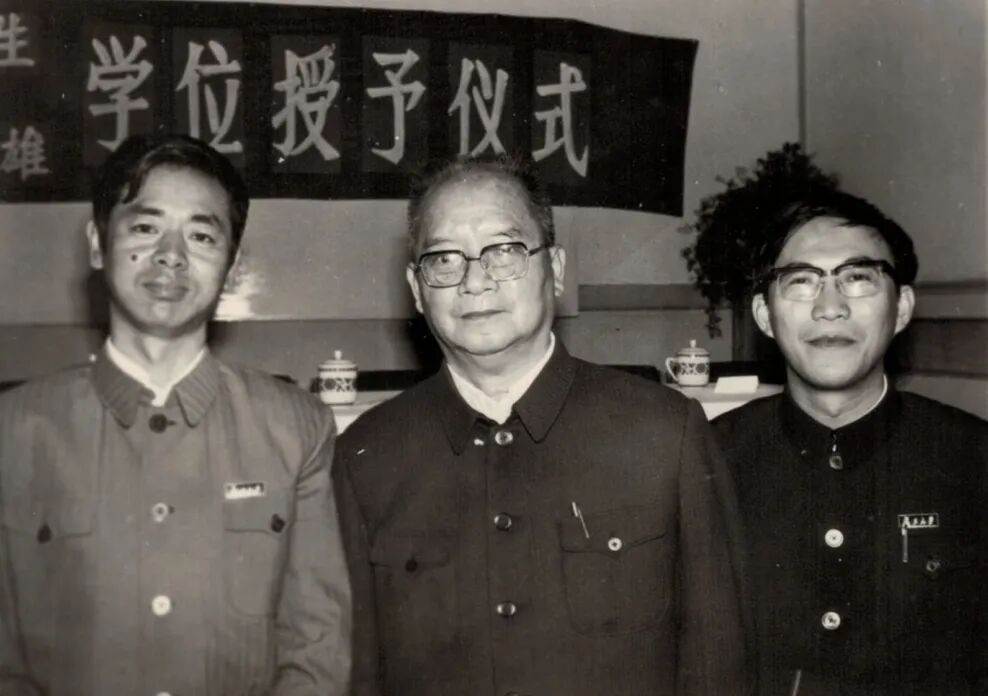 1983年10月19日,复旦大学举行博士学位授予仪式。谭其骧与周振鹤(左)、葛剑雄(右)合影