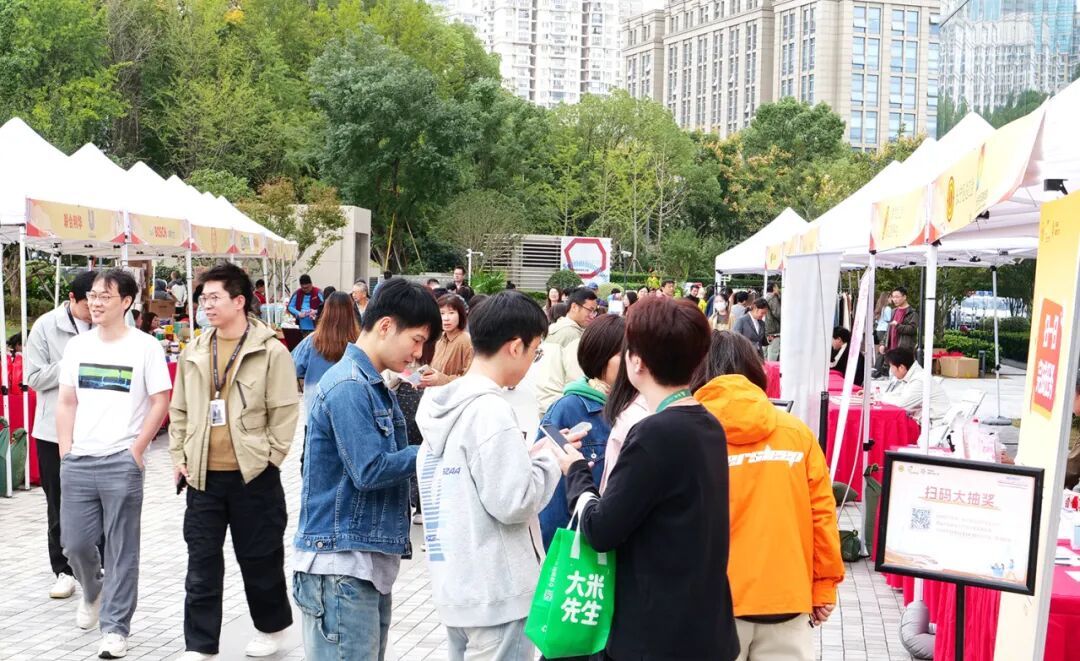 当天上午10点,海粟文化广场已是人头攒动,一派热闹的景象。据悉,此次活动邀请了30余家区内优质企业与商户现场设摊,其中不乏美天、春秋、博世、联合利华等区内知名企业,覆盖新兴消费、文旅体验、餐饮娱乐、智慧生活、公益咨询、消费帮扶等众多领域。工作人员热情地向过往市民介绍产品特点与会员专属福利,部分摊位前还设置了试吃、试用环节,各式糕点、水果、茶饮等摊位吸引了不少市民驻足品尝。