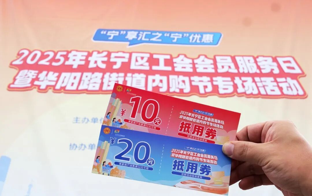 作为服务工会会员的内购活动,区总工会为到场的工会会员提供了免费领取的商户抵用券。持工会会员卡的职工在现场登记信息后可领取两张20元的商户抵用券,消费满50元即可使用一张,而未带卡或无卡会员在完成指定任务后也能获得两张10元的抵用券。