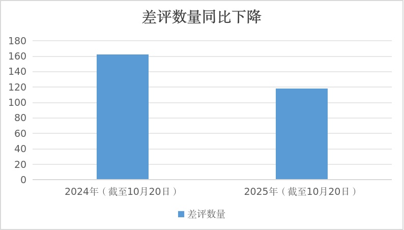 截至10月20日,全区累计收到企业群众评价45.7万余条,满意度达99.97%,群众主动留言“好评”1643条。其中“五星好评”占比99.72%,不满意率仅0.03%,差评量同比下降27%,所有差评回访满意率达到100%。这些成效的取得,一方面得益于持续强化差评整改与处理质量监督,确保群众反映问题件件有落实、事事有回应;另一方面,主动关注好评留言,及时排查潜在问题、迅速沟通处置,从源头上降低了差评产生概率。
