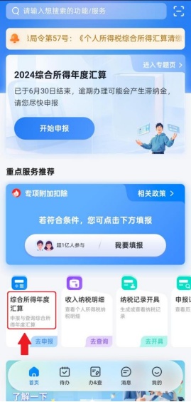 第一步:打开个人所得税App,点击“综合所得年度汇算”。