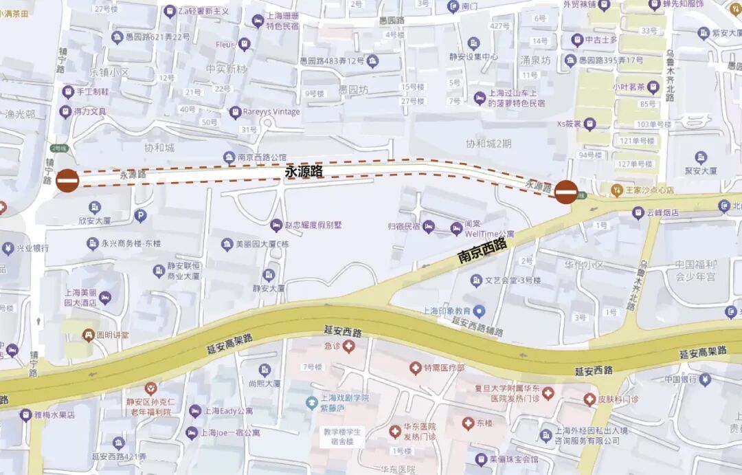 道路交通管制 “形跃周末·静安汽车时尚消费季”活动将于2025年10月25日至26日在永源路举办,为确保活动安全、顺利进行,根据《中华人民共和国道路交通安全法》等有关规定,静安公安分局决定对本区部分实施交通管制,现通告如下: 一、2025年10月24日22:00至2025年10月26日24:00期间,本区永源路(南京西路—镇宁路),禁止一切车辆通行。 具体管控措施如下: (一)机动车:禁止机动车双向通行; (二)非机动车:禁止非机动车双向通行。 二、执行公务的警车、消防车、救护车、工程抢险车等车辆准许进入上述交通管制道路。 静安公安分局将根据工作实际,视情提前或推迟临时交通管制时间,扩大或缩小临时交通管制范围。敬请广大交通参与者事先做好出行安排,积极配合公安部门工作。 警方特别提示 一、为保障活动期间交通安全、有序、顺畅,本区永源路(南京西路—镇宁路)实施交通临时管制,市民如需驾车通过交通临时管制道路,请事先了解禁行时间,绕道行驶。 二、本次活动不另设机动车停车场,机动车即停即走。非机动车可停放至南京西路/永源路、镇宁路/永源路,现场有专人引导。 三、为避免道路拥堵,请广大交通参与者文明出行,绿色出行。自觉遵守交通法规,在本区永源路(南京西路—镇宁路)实施临时交通管制期间,提前选择好出行安排和绕行线路,尽量采用公共交通方式。 违反本通告规定的,公安机关按照国家和本市有关法律法规,依法予以处罚。 静安交警热线(投诉举报)电话 可拨打:22177062