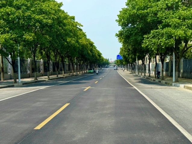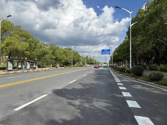 崧文路主要服务市民日常通勤和生活出行,此次工程把优化行车体验作为重点。施工时,该路段采用了AC-13改性沥青混凝土,通过在沥青里添加改性剂,让路面有更好的弹性和韧性,能平稳化解车辆行驶时产生的冲击与振动,进而有效减少轮胎和路面摩擦产生的噪音,让市民往返途中能享受到更平稳、安静的出行环境。