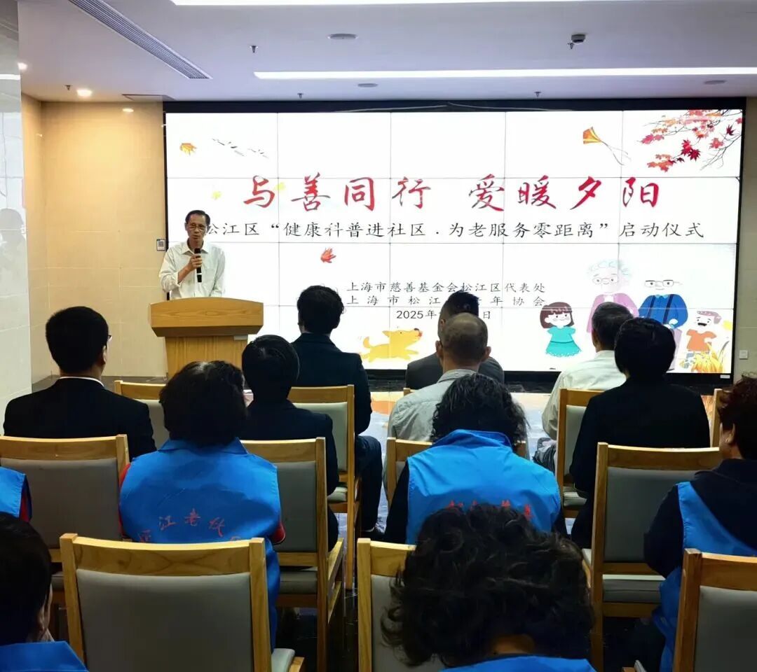 启动仪式上,上海市慈善基金会松江区代表处、松江区老年协会、松江区养老服务发展中心相关领导、爱心企业、老伙伴志愿者及老年朋友齐聚一堂,共同开启这场以关爱为核心的为老服务行动。活动从认知障碍干预到健康服务普及,持续以实事项目守护老年群体的生活质量。