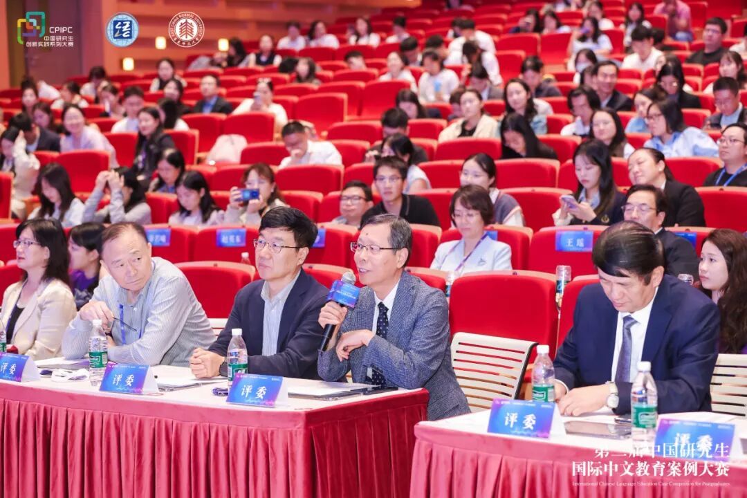 四支队伍不仅要对抽到的案例进行分析,接受对方团队的提问,还要接受专家评委的“拷问”。提问紧扣大赛主题,“人工智能背景下结合案例谈谈国际中文教育的课堂教学中教师的角色跟传统教师相比有何差别?”“AI在国际中文教育中将在哪些地方发挥作用?”“国际中文教育文化教学的终极目标是什么、有无层次之分?”等问题高屋建瓴,宏观思辨,让参赛者感到“比赛不仅是展示成果的平台,更是一次对教学理念的反思和碰撞”。
