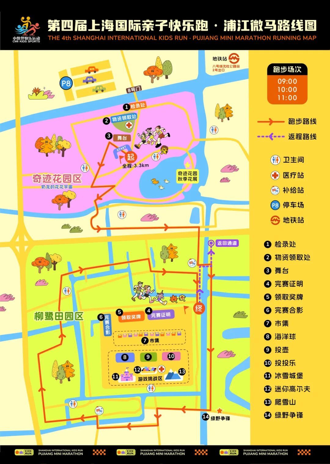 地铁出行:8号线沈杜公路站2号口出站后步行约900米,到达浦江郊野公园8号门(奇迹花园区),按照指引前往检录处。