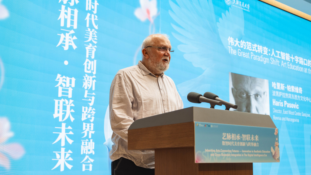 在主题发言环节,多位嘉宾带来了前沿且富有启发性的分享。波黑萨拉热窝东西方文化中心总监哈里斯·帕索维奇以《伟大的范式转变:人工智能十字路口的艺术教育》为题,指出人工智能带来的不仅是工具革新,更是艺术教育根本性的范式转变,引发对教育本质的再思考。
