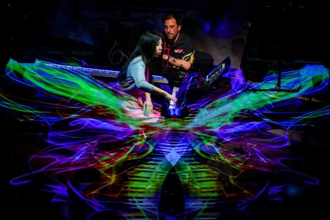 展演02 《.minX 鸣·思- 多媒体交互音乐舞蹈剧场》 左右滑动查看音乐会图集 4月10月、11日“数字缪斯——2025音乐科技融创节”第二台展演作品《.minX 鸣·思- 多媒体交互音乐舞蹈剧场》首演。德国汉堡的跨学科艺术组合 .ratatataM!与观众探讨“多”与“少”的话题,造多维度艺术体验,引导观众回归生活本质,在声光漩涡里体验“极简思维”的禅意。 展演03 《蝶——旋律与光影的沉浸音乐现场》 左右滑动查看音乐会图集 4月18日-19日,2025“数字缪斯”展演作品《蝶——旋律与光影的沉浸音乐现场》在凯迪拉克·上海音乐厅首演。主创团队以“蝶”为精神载体,现场音乐演奏保留了即兴创作空间,视觉艺术家用“光膜”现场为音乐上色,观众见证了音乐触发光色变化的创作过程,音乐与光影都充满梦幻与想象。 展演04 《陀螺游戏——音乐肢体交互剧场》 左右滑动查看音乐会图集 4月26日-27日,“数字缪斯——2024音乐科技融创节”第四台展演作品《陀螺游戏——音乐肢体交互剧场》上演,舞台被塑造成一个动态且可感知的音乐空间,舞者通过肢体动与静、快与慢、收与放的额状态,决定其自身与声音和音乐的关系,重新定义了表演者与空间的互动方式,更将舞蹈、音乐与灯光融合为一场沉浸式游戏体验。 “听到、看到、还能与艺术家畅聊,完全不要担心新的概念与演出模式离你很远,剧场和艺术家的努力值得我们尝试。” ——观众评价 特邀展演作品 左右滑动查看《关于谎言的全部真相》图集