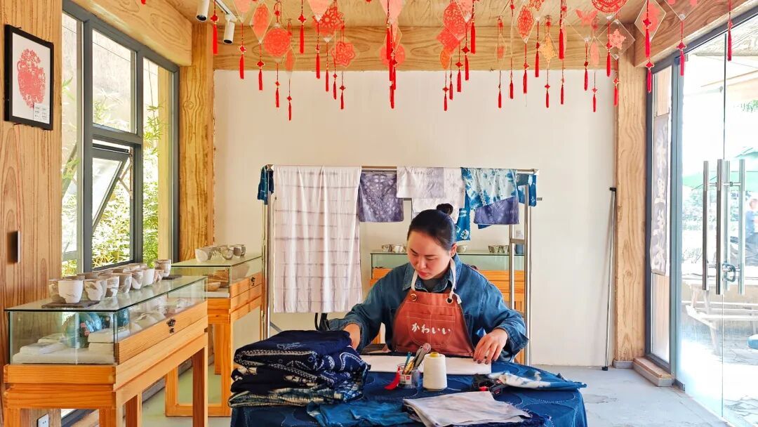 旅居客在红岩镇白崖古城村体验扎染手工技艺