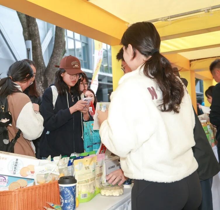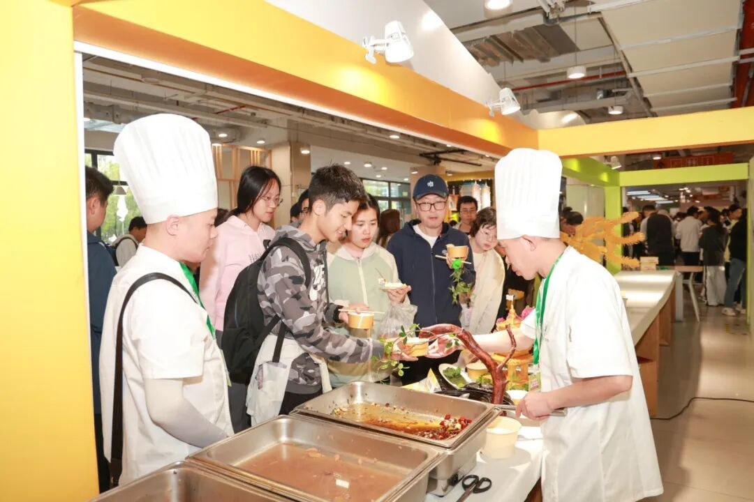 场外,饮食文化互动区同样人头攒动。非遗手工、食品知识科普、社团文化展示等20余个互动点位,让师生在品尝美食的同时,感受四方风土人情。