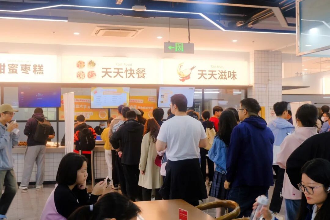 张江校区食堂,淮扬名厨的窗口前排起长龙。