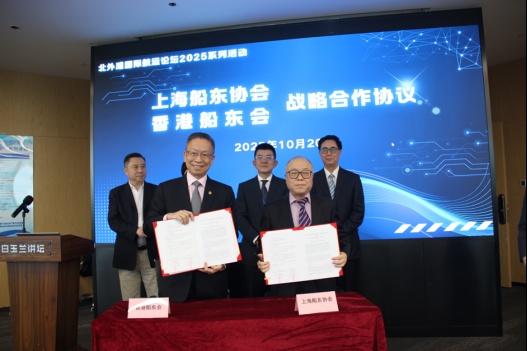 上海船东协会与香港船东会签订战略合作协议,明确建立常态化沟通机制,在绿色航运技术推广、海事人才联合培养、航运市场信息共享等领域协同发力。