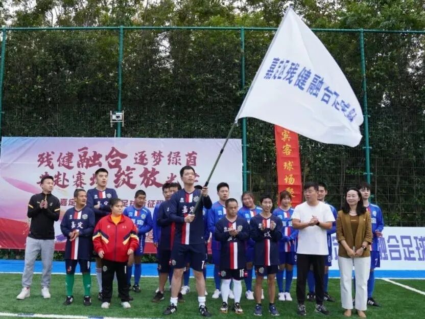 2025年上海市第三届“爱和恩杯”残健融合足球赛即将拉开帷幕。今天(10月22日),嘉定区残健融合足球队出征仪式在新飞扬足球场举行。