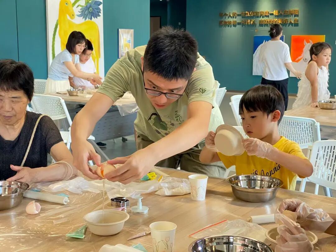 杨浦区“家+书屋”项目不仅是“一家人的成长”,也是“一座城的共生”。近年来,杨浦区妇儿中心整合区域资源,连接高校与社区,构筑开放多元的社区教育生态圈。复旦、同济等知名高校的师生,在中心开设一系列创新实践课程,从化学实验到趣味数学,从艺术科普到民俗运动……为亲子家庭开拓视野、启迪智慧。联手上海市巾帼园开展“家+书屋”巾声有约红色家风宣讲,组织公益妈妈开展系列夏日美食小课堂、当家小主厨等活动,邀请女性艺术家举办亲子艺术工坊……让家庭教育在“家+书屋”实现“德、智、体、美、劳'五育并举。