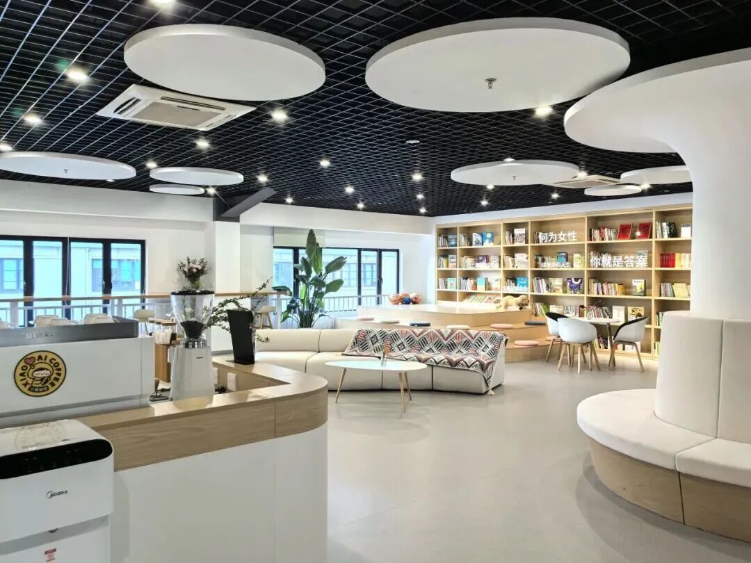 在杨浦,有个既能让小朋友畅游知识海洋,又能实现家、校、社的协同育人,还能激发社区共创无限可能的“家门口”好去处,它就是杨浦区妇女儿童服务指导中心(以下简称杨浦区妇儿中心)。今年3月,占地1500㎡的杨浦区妇儿中心焕新归来,以“人生拼图”为设计灵感,融合科创基因与人文关怀,打造集亲子互动、女性赋能、文化传承于一体的城市新地标。值得一提的是,这里还是杨浦区“家+书屋”建设的核心枢纽。
