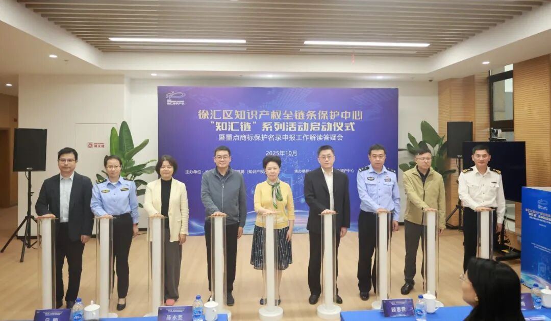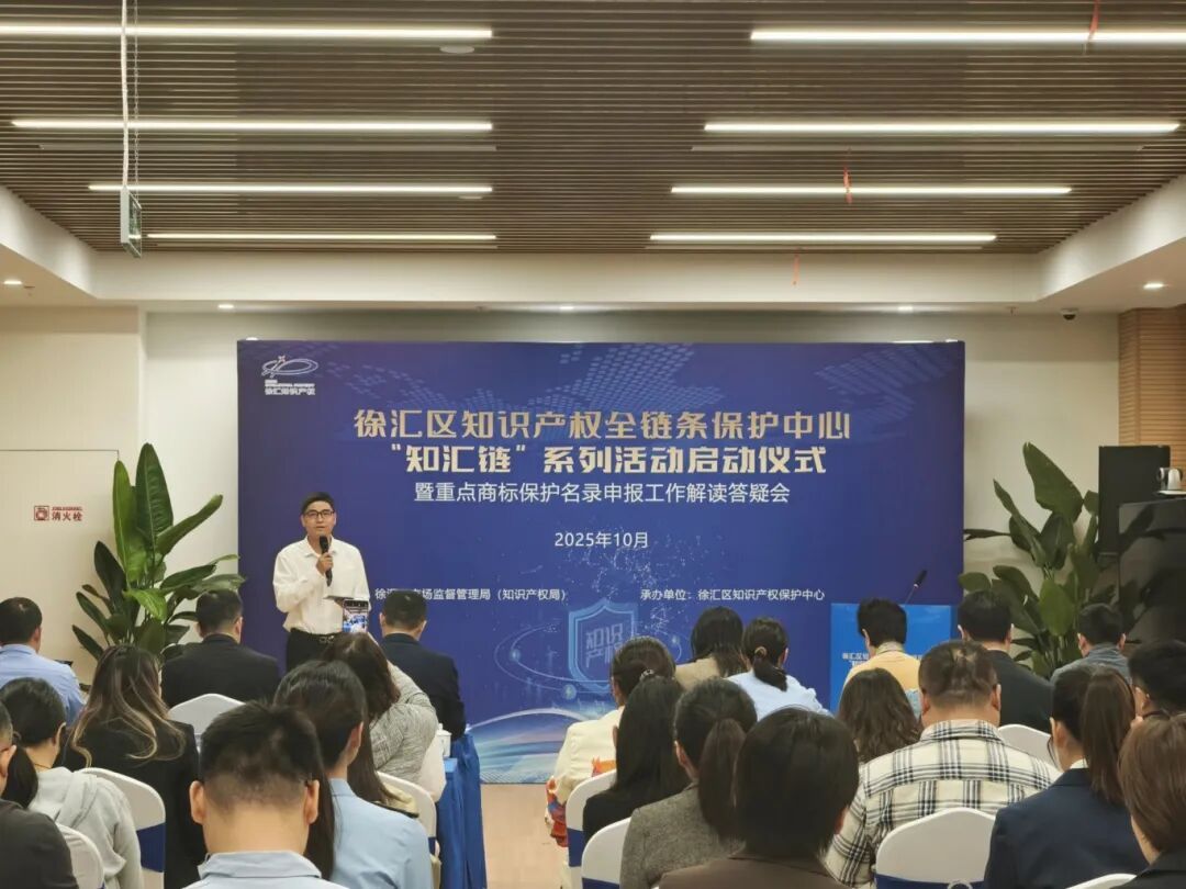 10月21日,徐汇区知识产权全链条保护中心内气氛热烈,“知汇链”系列活动启动仪式暨重点商标保护名录申报工作答疑解读会在此举行。区内40余家企业代表齐聚一堂,共同见证这一知识产权保护领域的重要时刻。