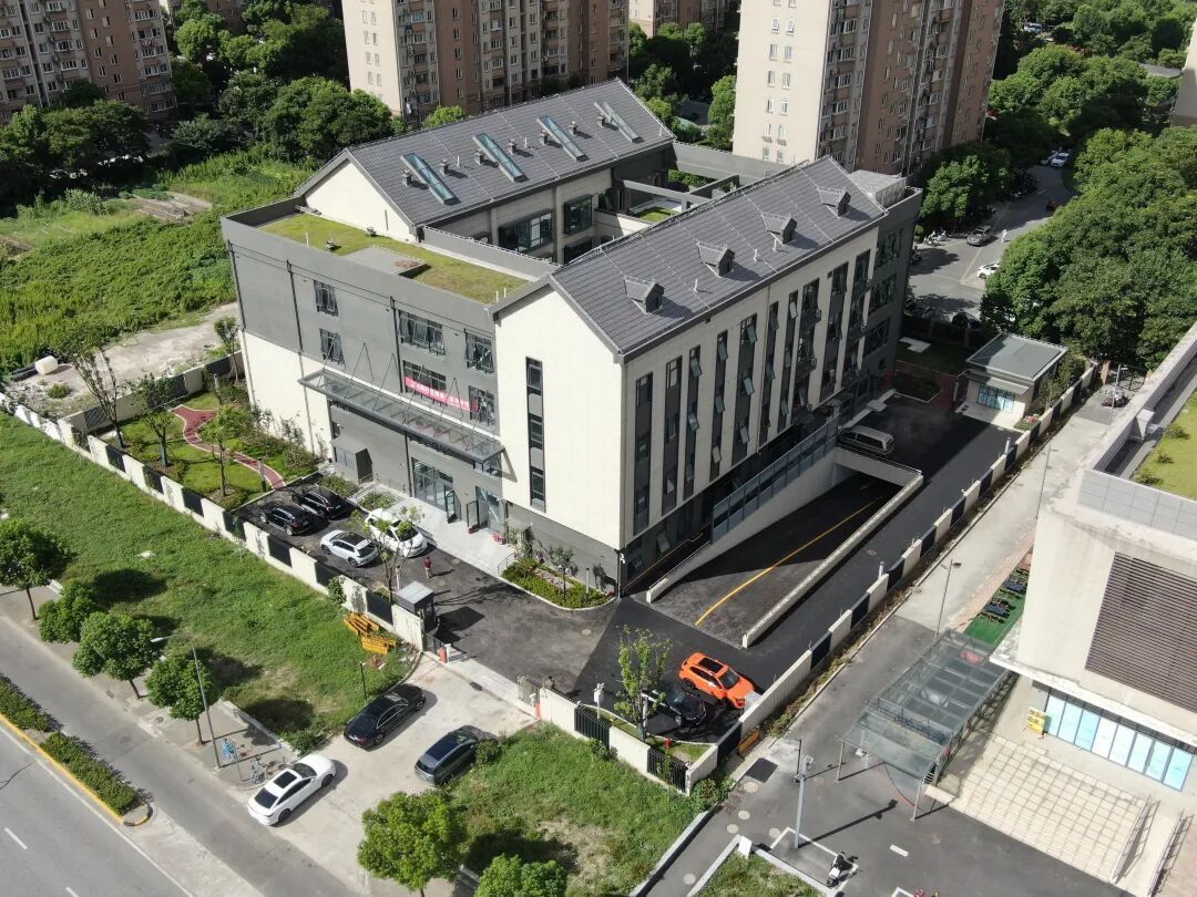 该养老机构建筑造型为中式合院风格,采用中轴对称的布局方式,引入传统四合院的坡屋顶元素,体现江南水乡的建筑风格和人文亲和。同时,在设计方面坚持以人为本,关注老人的生理、心理和社会需求,尤其是设置了一处明亮、舒适、开放的中心活动区域,为老人提供一个可以聚集、交流的户外中庭。