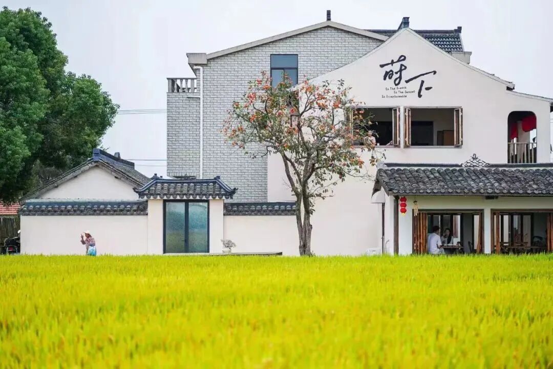 青村镇莳下田园餐厅——红柿与稻田的江南绝配:西侧观景平台下午4-5点拍长焦大片,红柿、金色稻田与江南民居同框层次拉满;主庭院上午9-11点仰拍,低垂柿枝配古朴屋檐,光影斑驳超出片;二楼西侧木窗全天可拍,提高ISO能平衡窗内外曝光,框住一幅活的秋景画。