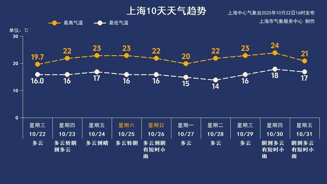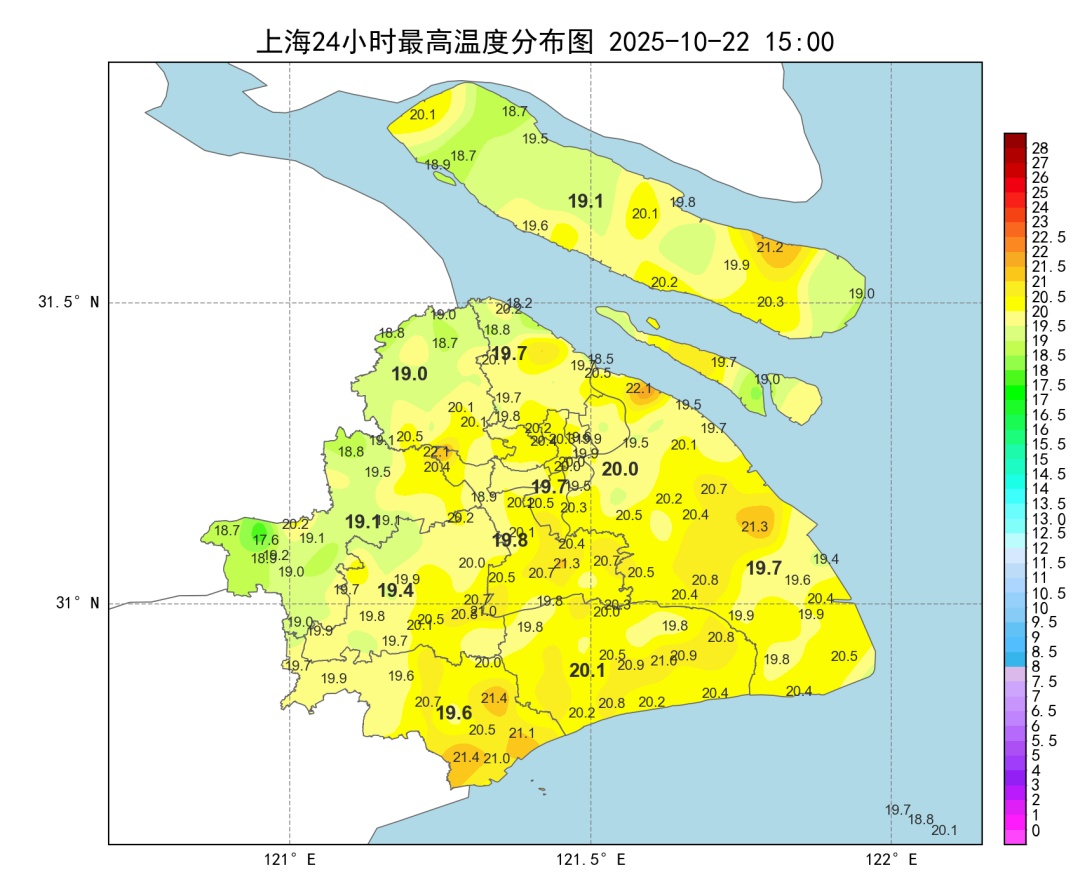 昨天申城云量较多,阳光时隐时现,总算带来一点暖色调,路上也能闻到若隐若无的桂花香了。但由于风力依然较强,局部最大阵风达5~6级,升温受阻,大部地区最高气温都不到20℃,市区徐家汇站定格在19.7℃,还有些令人瑟瑟发抖。