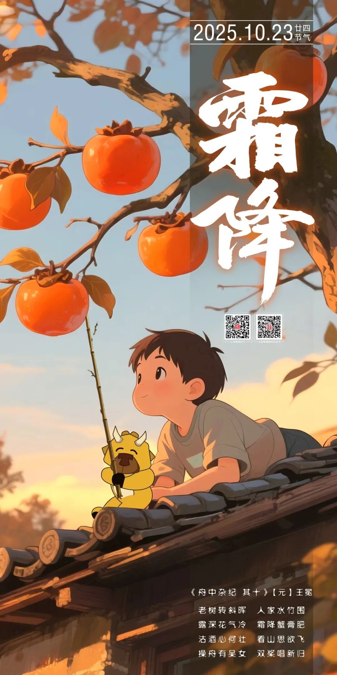 俗语说“霜降吃丁柿,不会流鼻涕”,认为此时吃柿饼可御寒保暖,还能补筋骨。柿饼成熟于霜降前后,口感香甜。