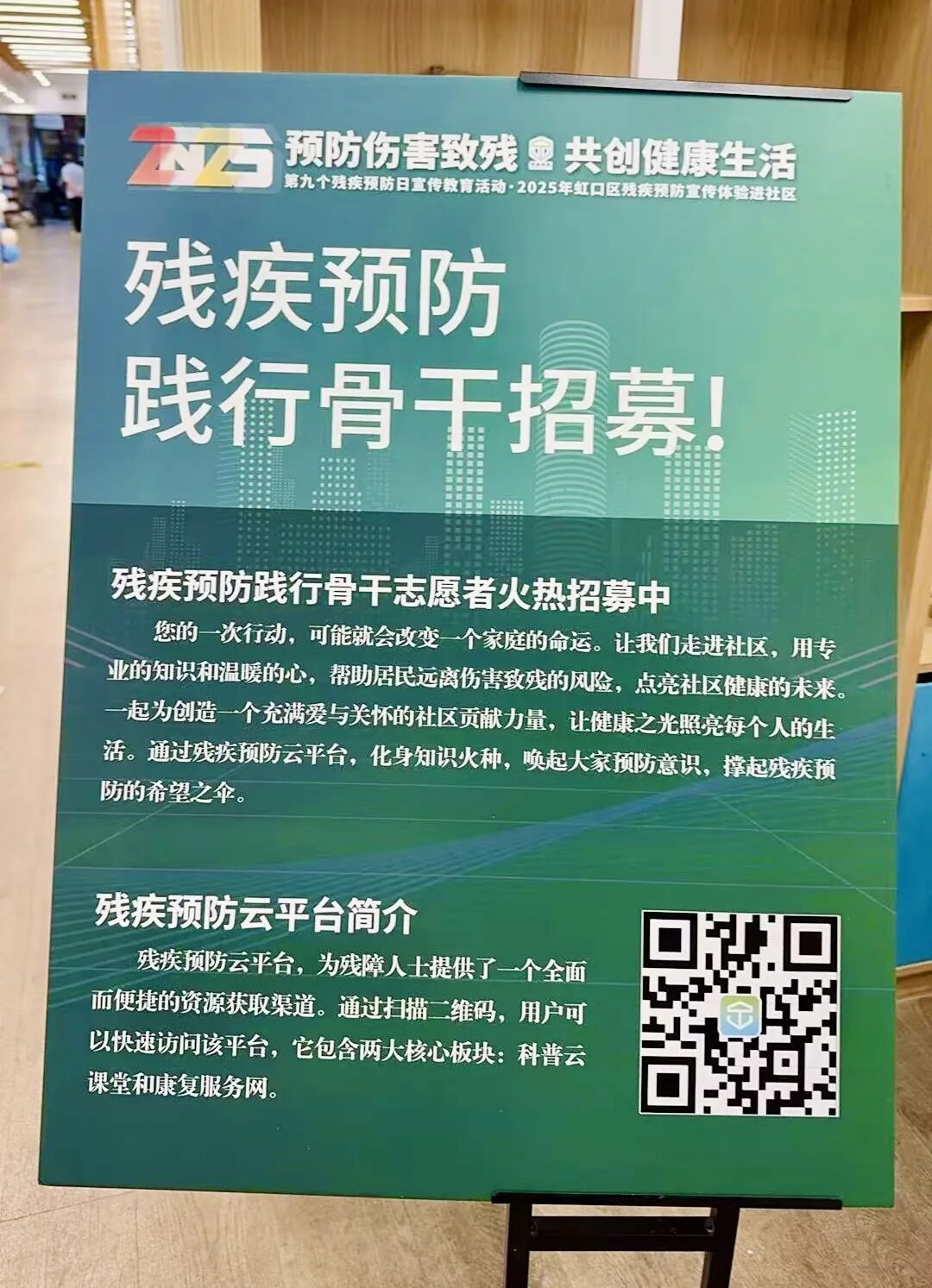 日前,虹口区残联在欧阳路街道第四市民驿站开展“残疾预防体验进社区”系列活动。活动以“预防伤害残疾、共创健康生活”为主题,现场设置了体验区、便民服务区等多个区域,为居民提供全方位的残疾预防知识宣传和实景体验。