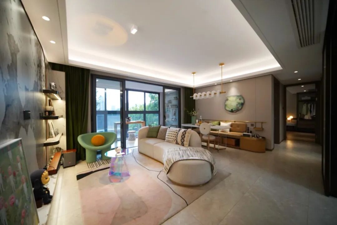 社区整体采用中轴对称布局,绿化景观错落有致,形成和谐韵律。“我们规划了四大主题景观区域,包括儿童游乐天地、青年活力区、长者健身区以及全龄共享空间,满足各年龄段住户的休闲需求。”孙连华补充道,“建筑风格现代简约,最大栋距约达60米,板式结构设计使整体得房率保持在80%左右。”