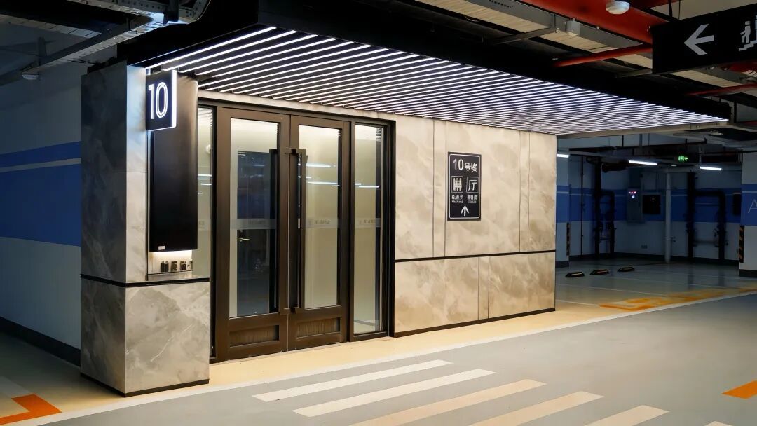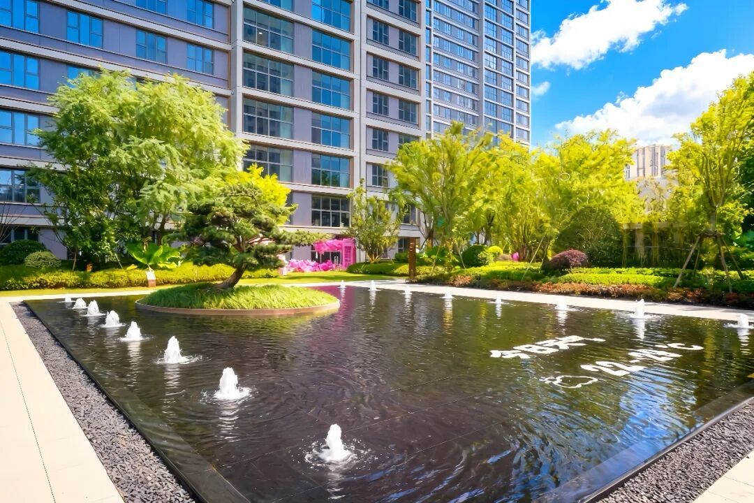 站在招贤东路的社区主入口,超宽大门带来强烈的视觉冲击。销售顾问孙连华介绍,星尚观澜世嘉(备案名:观璟华庭)为业主打造了“三进式”归家礼序:“第一进是宽度约达60米的社区大门,气势恢宏;入门后可见涌泉中央水景与挺拔的迎客松,营造迎宾氛围。第二进为星级入户大堂,第三进则是特别设计的酒店式地库大堂,让每一次回家都充满仪式感。”